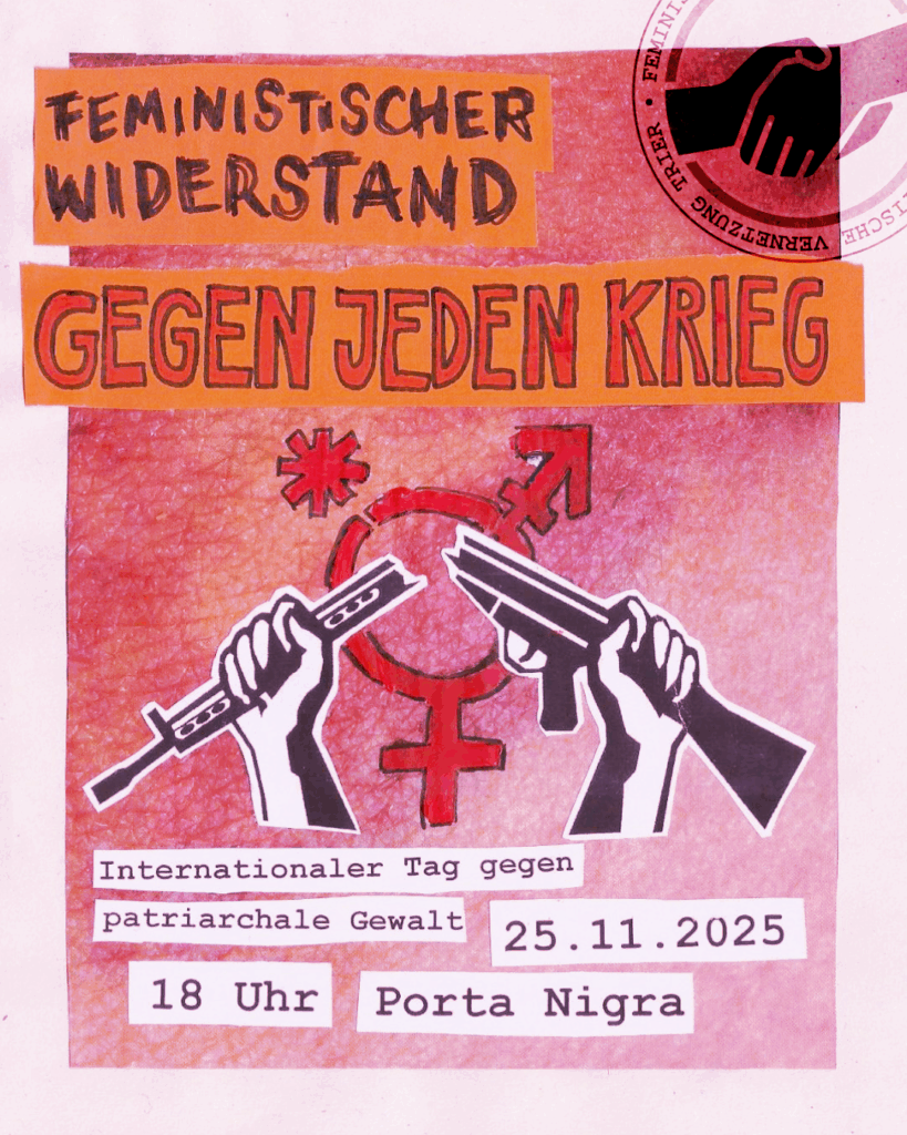 Die Beispiele von feministischen Errungenschaften und Kämpfen weltweit zeigen uns, woran wir anknüpfen und bringen Kontinuität in unsere Arbeit. Schon immer haben FLINTA* Personen gegen Ungerechtigkeiten und für ein selbstbestimmtes Leben gekämpft. Auch in Trier stellen wir unsere Arbeit und Kämpfe in diese Tradition.